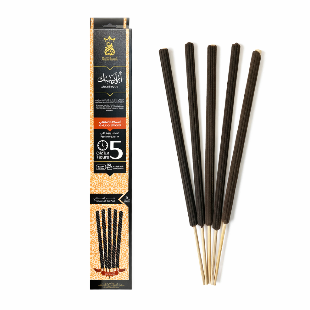 Arabesque Galaxy Sticks est un encens oriental riche et élégant, conçu pour créer une atmosphère chaleureuse, gourmande et sophistiquée. Inspiré de l’héritage oriental et des décors arabesques, il diffuse un parfum enveloppant mêlant douceur sucrée, fleurs orientales et profondeur boisée.